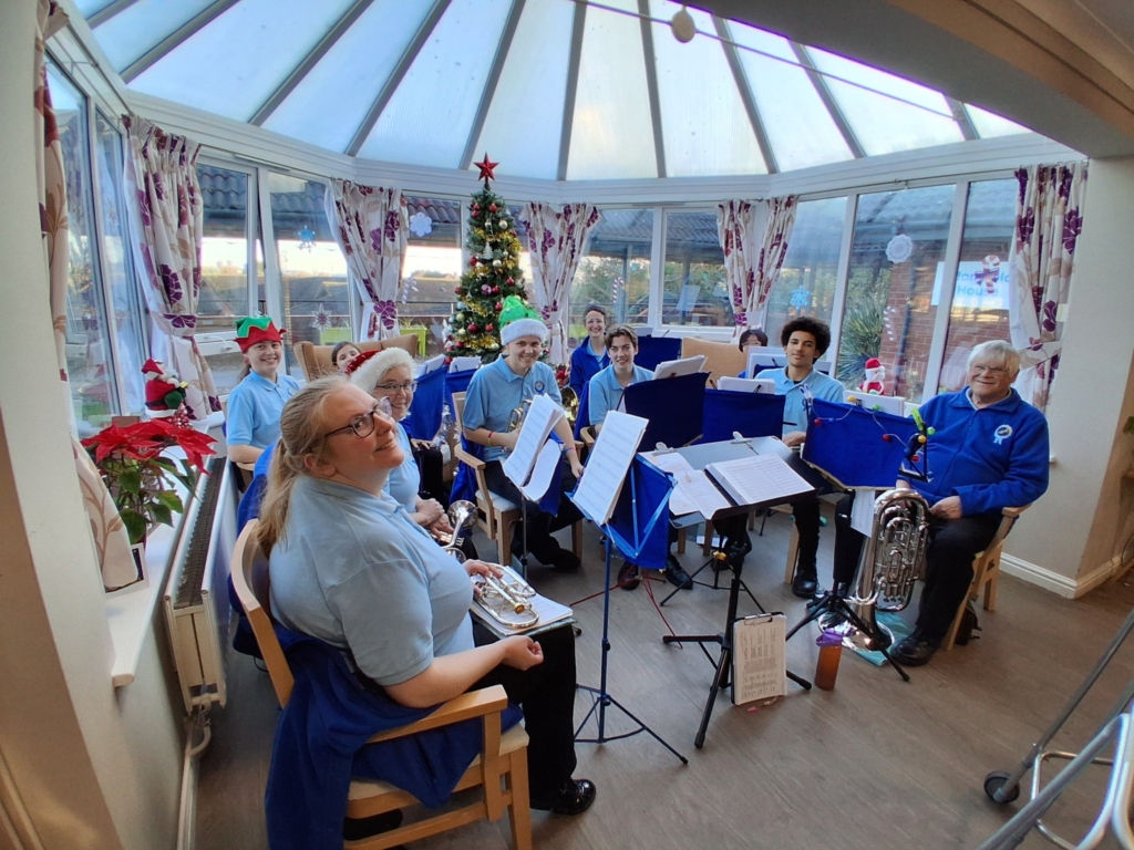 Finishing off a busy weekend, the band played at Blomfield House Care Home on Sunday 14th December. The band has played at Blomfield House for several years now and usually performs for the residents and their families in the summer and at Christmas. A smaller sized band is the perfect fit for the lovely bay window!!