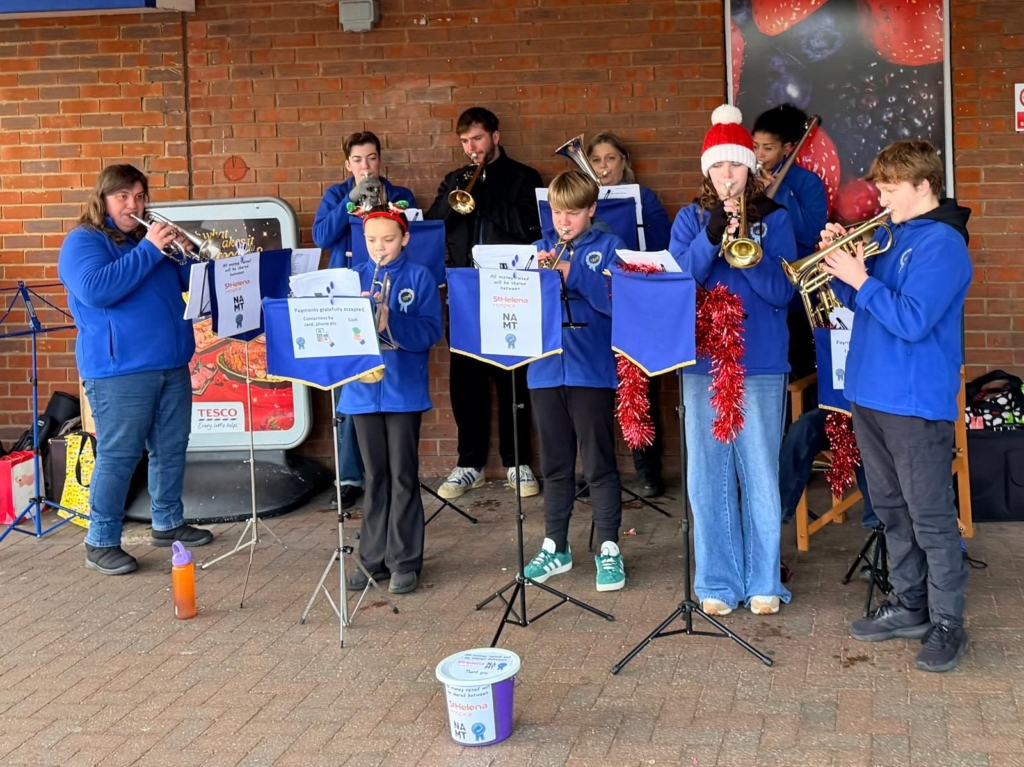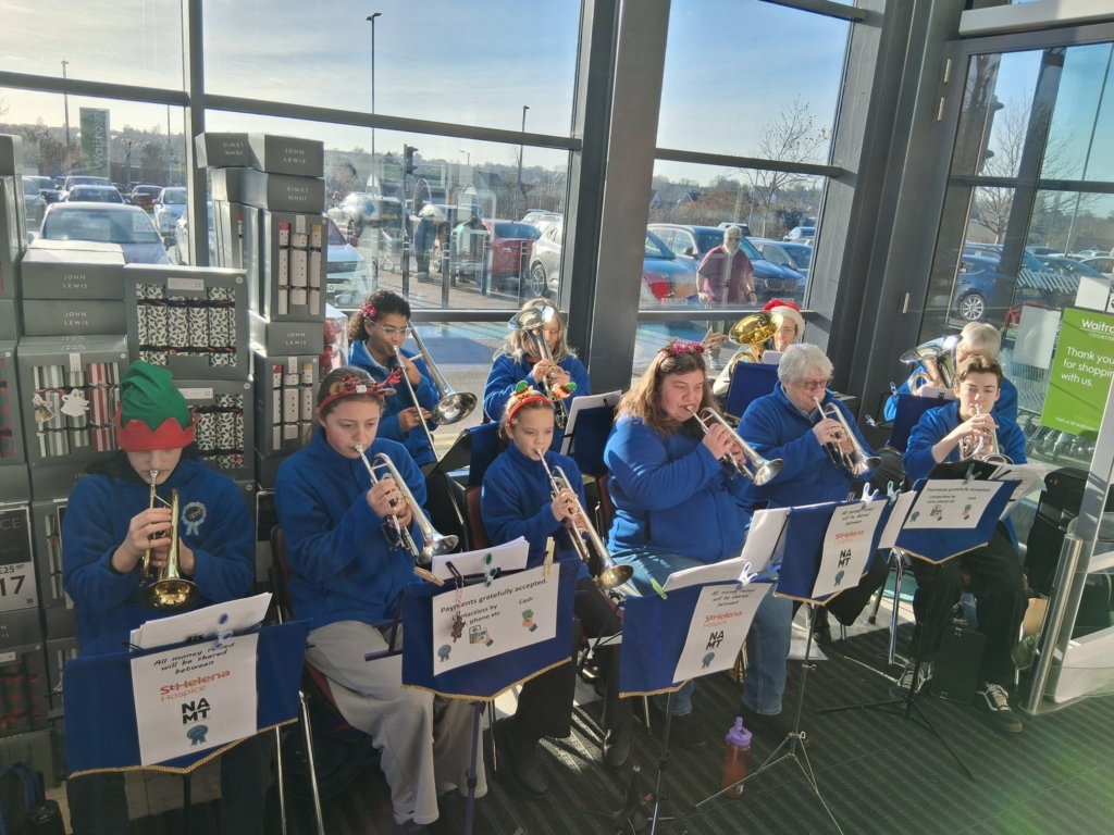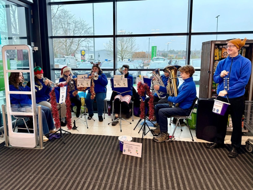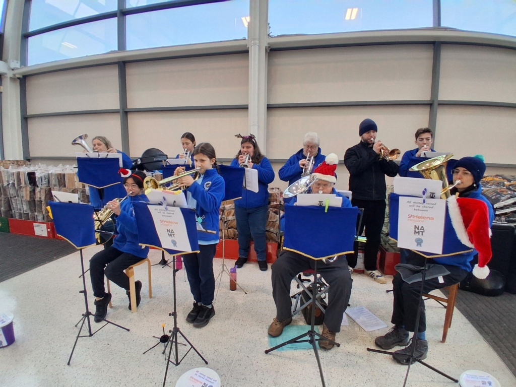 Besides the more formal concerts the band was also out carol playing, raising money for St Helena Hospice, The Nick Alexander Music Trust and band funds. The band played at Waitrose Colchester (twice), Tesco Highwoods and Sainsbury’s Stanway. The band is very grateful to these supermarkets for letting us play at their stores.